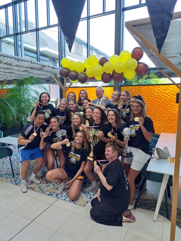 Als afscheidscadeau heeft de burgermeester een collage van kampioensfoto’s op canvas ontvangen van de vele vieringen op het Gemeentehuis. Een geschenk die door hem enorm werd gewaardeerd.