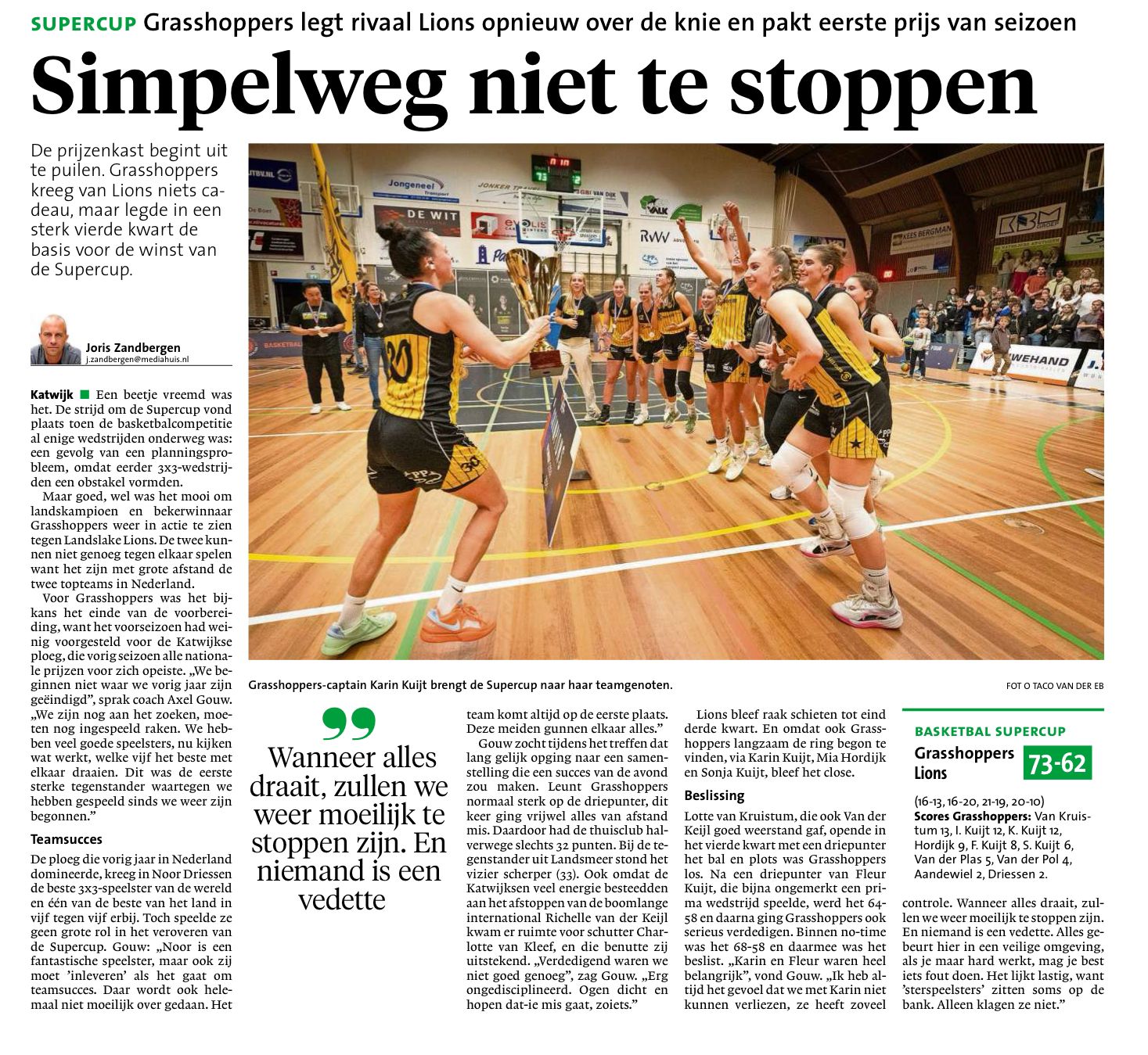 23 oktober 2024Na de voor GBI van Dijk Grasshoppers succesvol verlopen supercupwedstrijd van afgelopen zaterdag is het deze week verder weer “business as usual “ Team en staf reizen donderdag 24 Oktober af naar Barendrecht waar Startportaal-Renza [...]