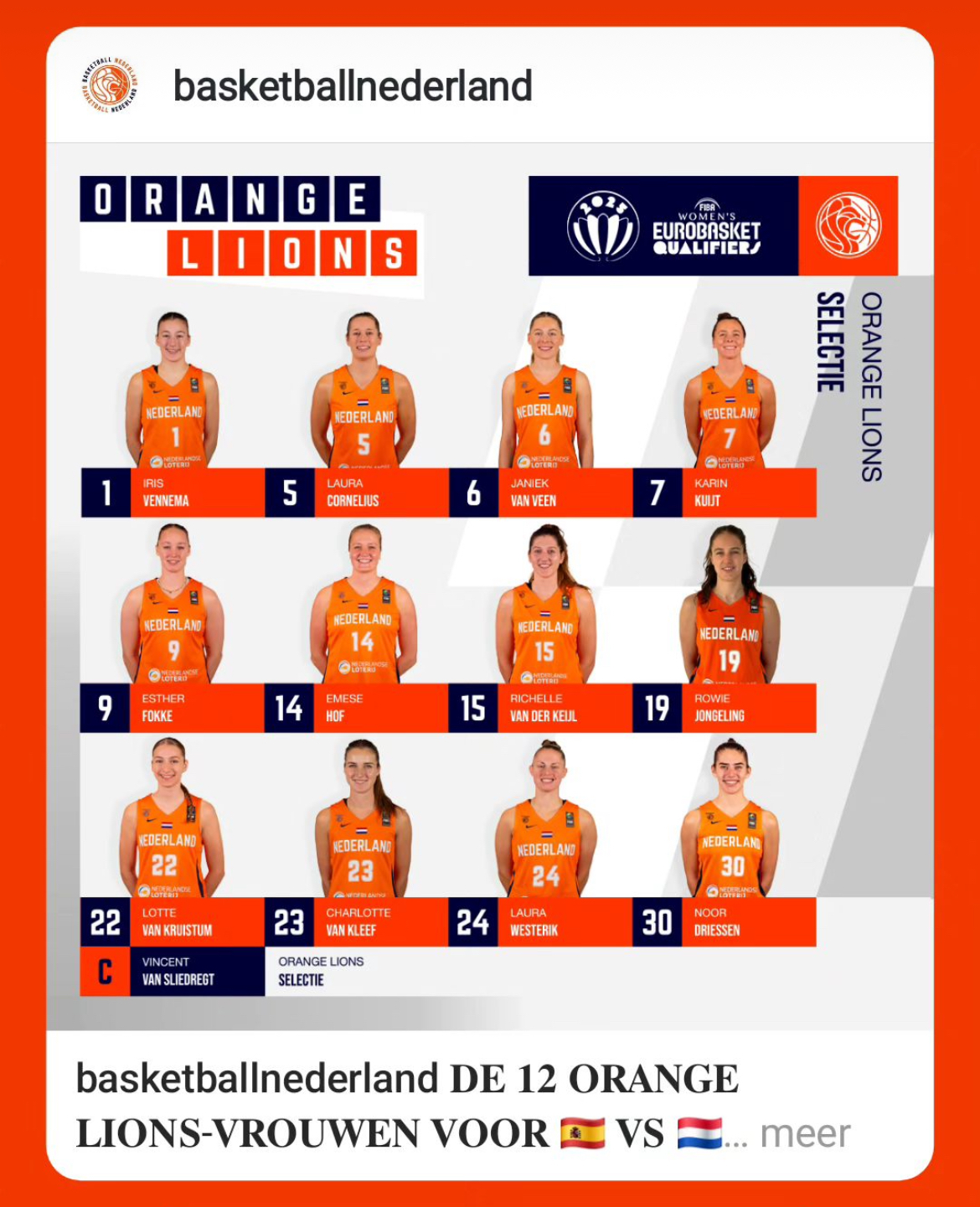 GBI van DIJK Grasshoppers goed vertegenwoordigd in Orange Lions vrouwen 5×5