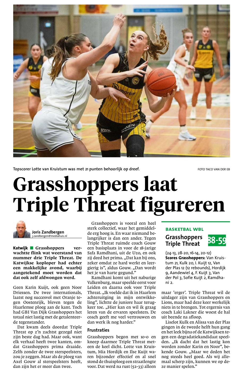 Zaterdag 16 november 2024: GBI van Dijk Grasshoppers VSE1 – BC Triple ThreaT VSE1