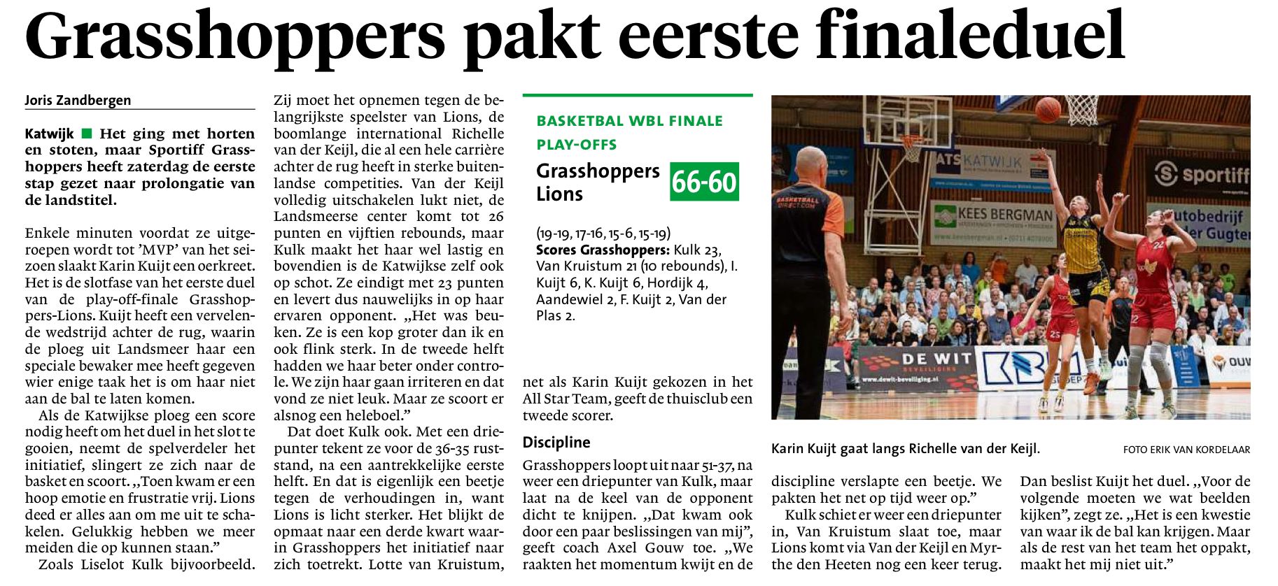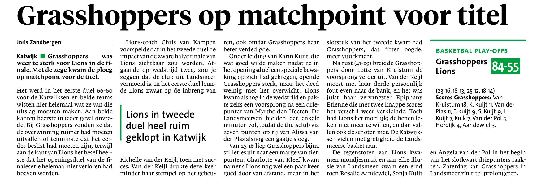 23 mei 2024Uit de media: @NOSsport "Basketbalsters Grasshoppers één zege verwijderd van prolongatie landstitel" LEES VERDER OP @NOSsport Uit de media: WEST "Grasshoppers op poleposition voor landstitel" LEES VERDER OP WEST SPORTNIEUWS Uit de media:Teletekst "Grasshoppers laat [...]