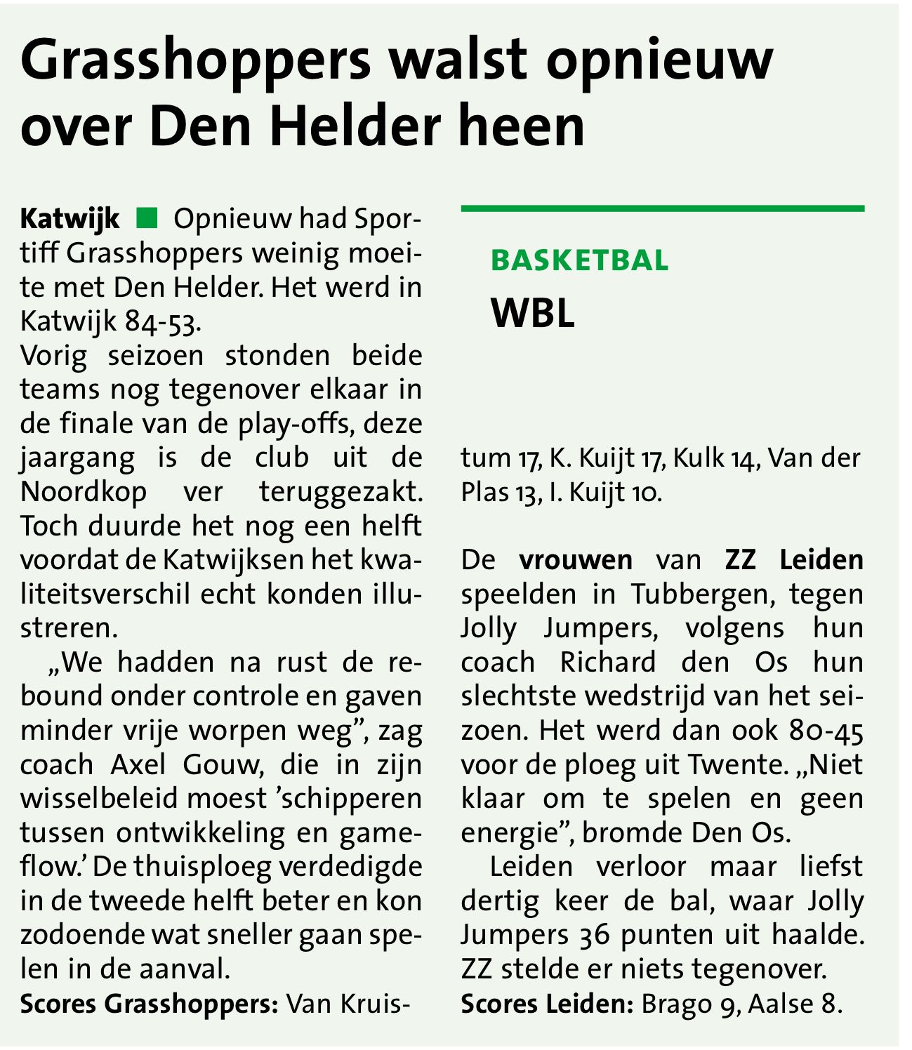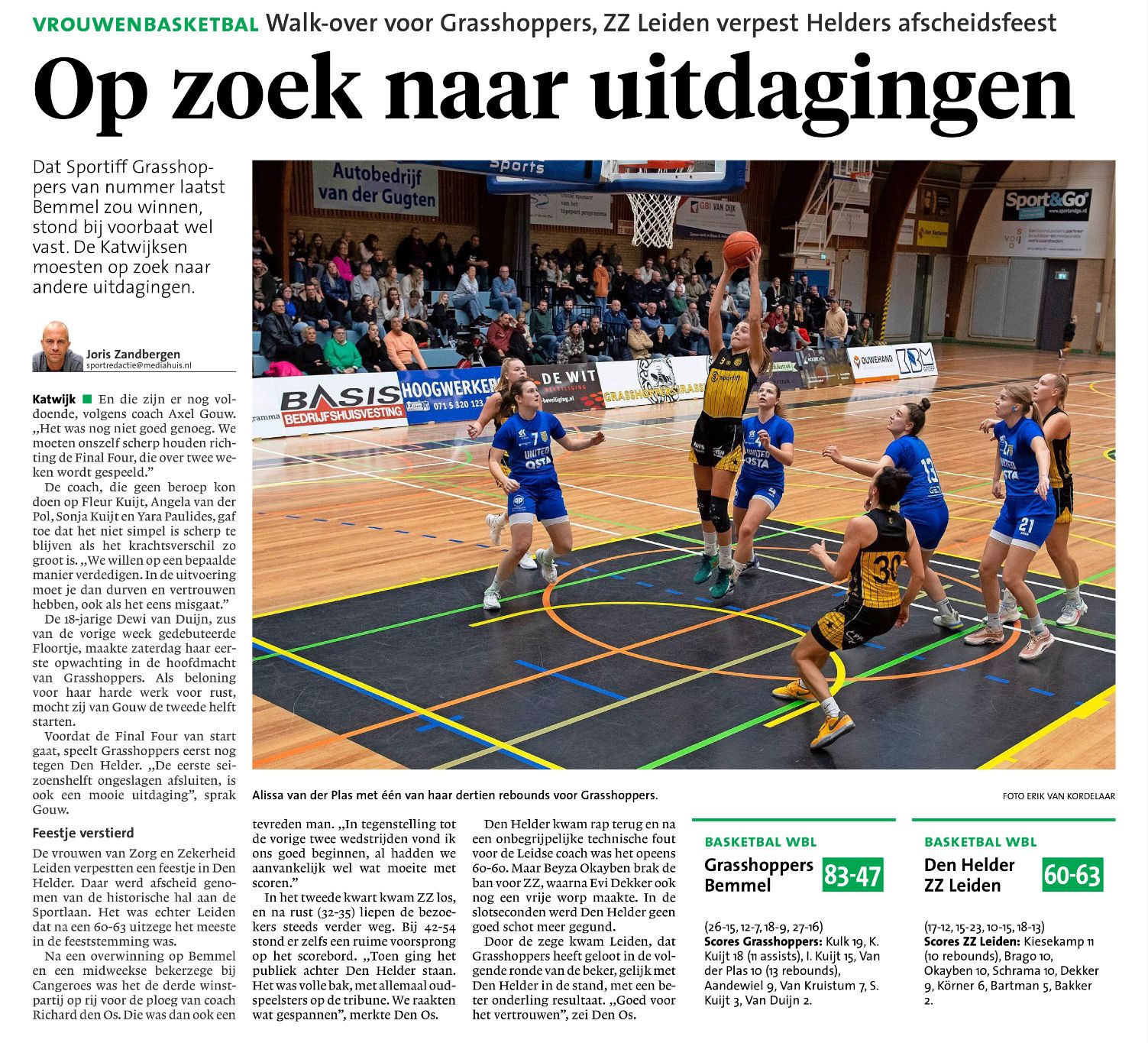 15 december 2023Zaterdagvond 16 december speelt Sportiff Grasshoppers VSE1 tegen Den Helder SUNS. De wedstrijd wordt gespeeld in Sporthal Cleijn Duin en begint om 19:45 uur Sportiff Grasshoppers VSE1 staat op de eerste plaats in de WBL [...]