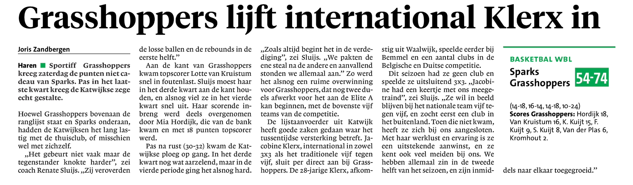 19 januari 2023Aankomende zaterdag komt het Bemmelse Lekdetec.nl naar Katwijk. In sporthal Cleijn Duin is om 19:00 uur de tip-off tussen Sportiff Grasshoppers VSE 1 en Lekdetec.nl VSE 1 Grasshoppers leed afgelopen zaterdag een gevoelige nederlaag. In [...]