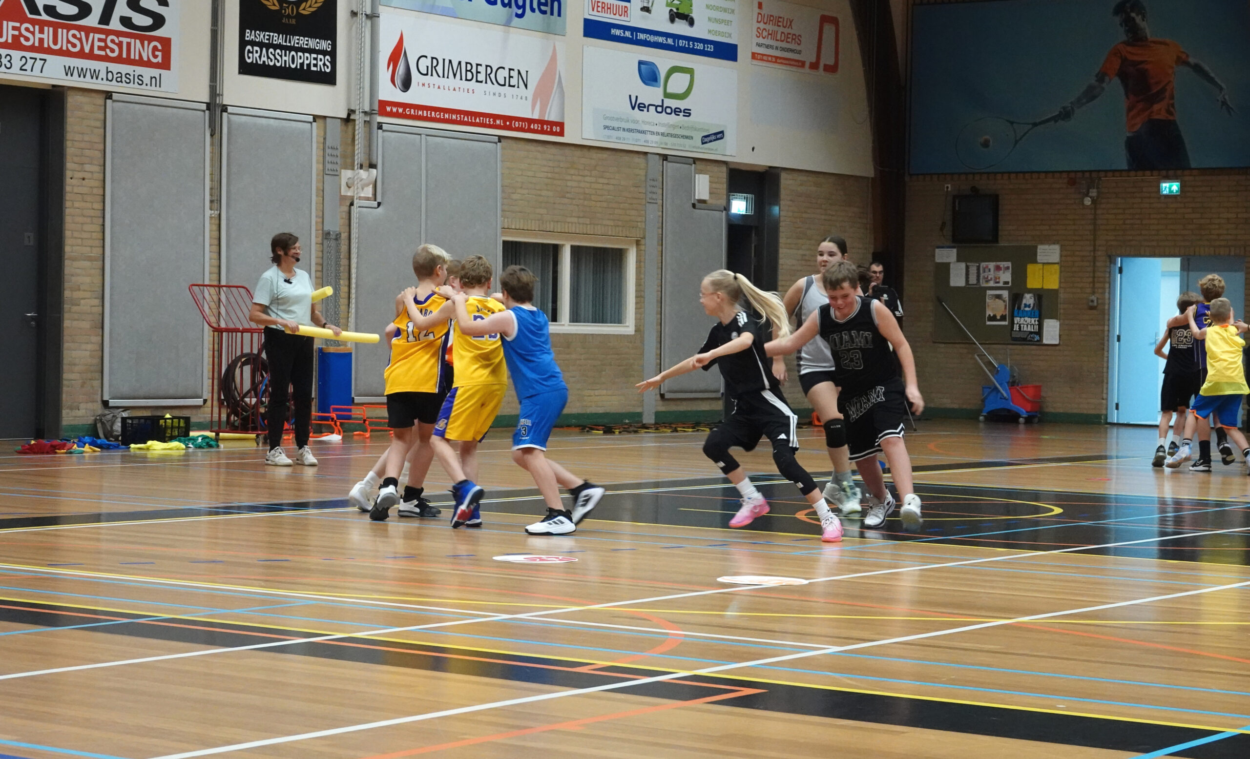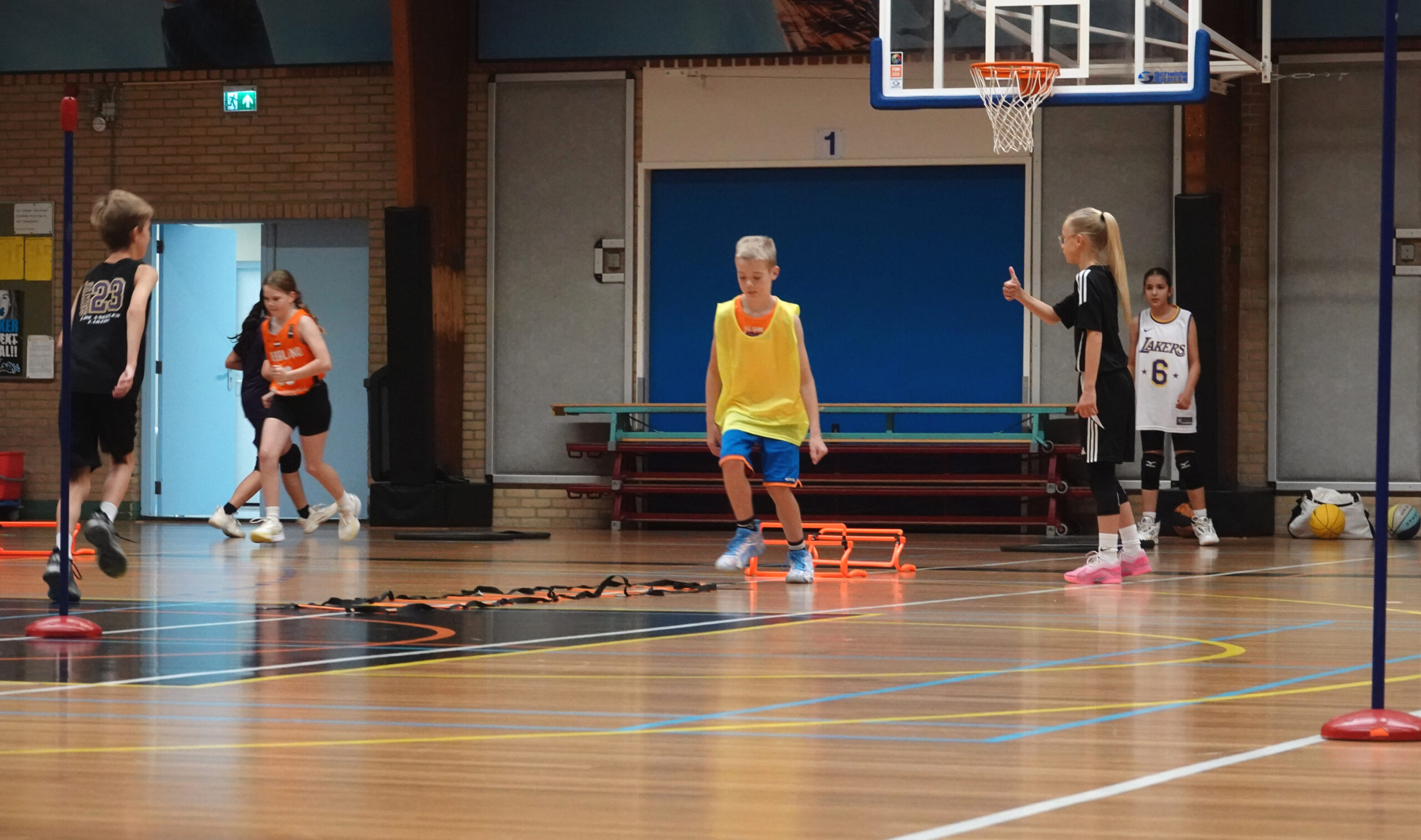 Mie toonde in het praktische gedeelte hoe je kinderen stap voor stap leert om met zelfvertrouwen beslissingen te nemen (autonomie), feedback te geven en feedback te ontvangen. Hoe je op speelse manieren basketball-techniek aanleert (competentie) en hoe leert om samen te werken (verbondenheid).