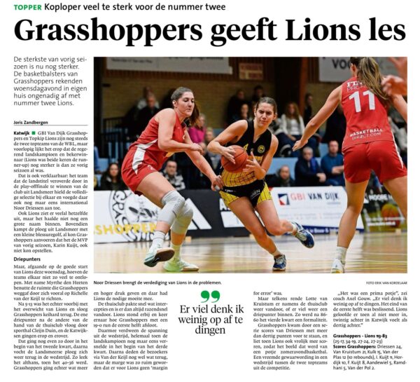 Uit de media: ” Grasshoppers geeft Lions les” Bron: Leidsch Dagblad Verslag: Joris Zandbergen John Spaan2024-11-21T08:48:00+01:00 FacebookXWhatsApp Related Posts
